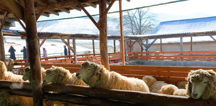 (10분정도 걸어올라가면 양떼목장이 한 눈에 보이더라구요! 12월에 다녀왔는데 아직 눈이 다 쌓이지 않아 많이 예쁘진 않았습니다.)