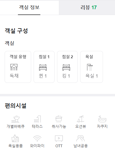 객실 정보 및 가격