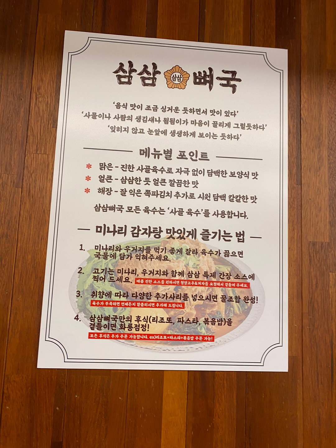 그래서 내내 방황하다가 친구가 맛있다고 했던 삼삼뼈국에 갔다.