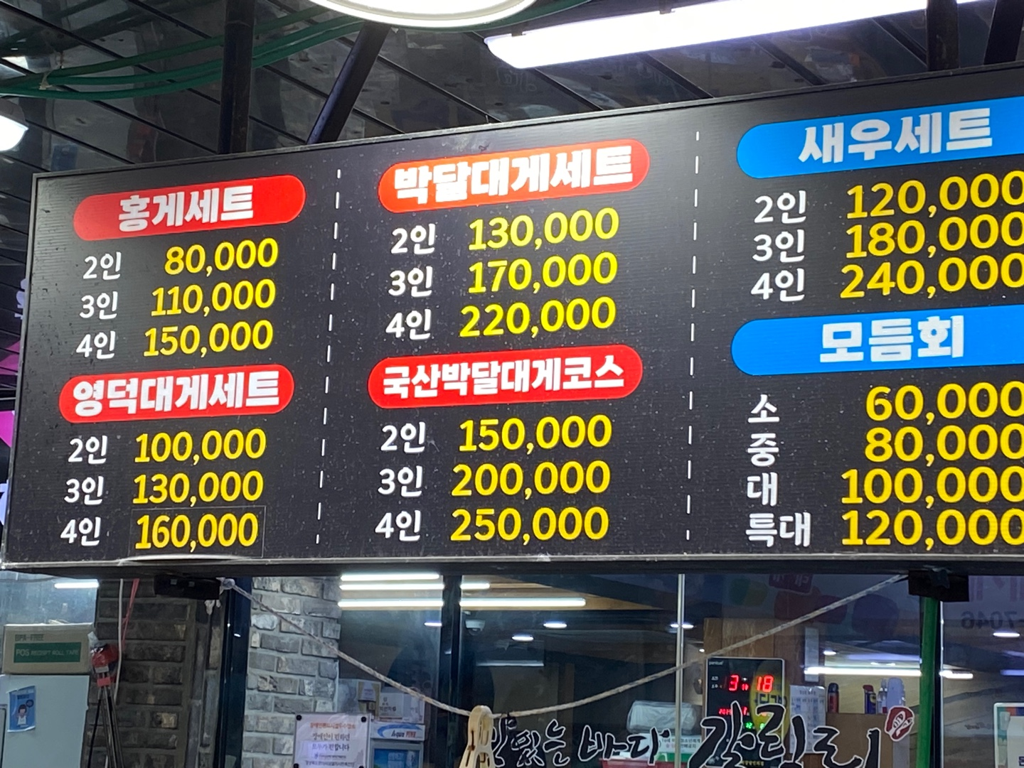갈릴리대게회식당 위치: 경북 포항시 북구 죽도시장길 35 갈릴리 대게 회식당