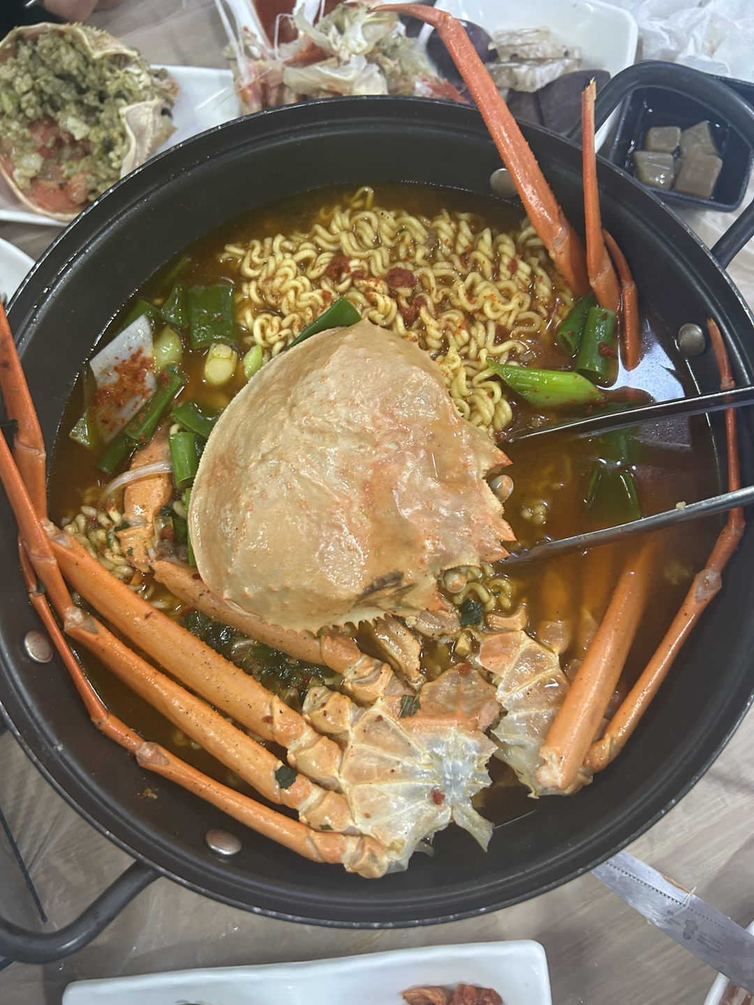 우리는 2명이 미리 예약해서 테이블 합친거라 홍게라면 2개가 합쳐서 나왔다.