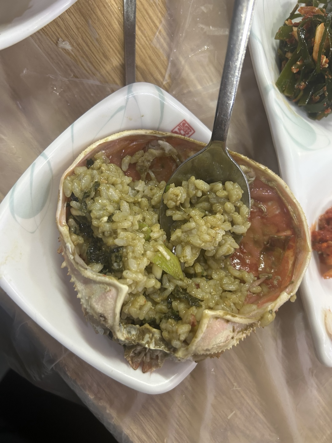 전복내장죽? 게 내장죽? 정확하게는 모르겠지만 내장죽이었다.