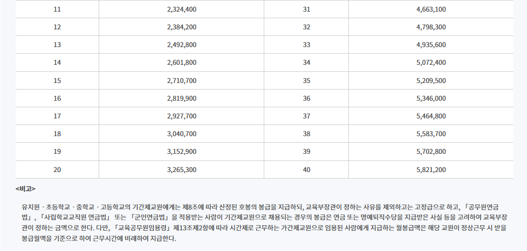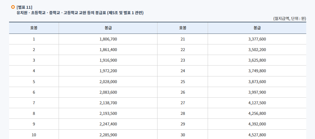2025년 유치원, 초등학교, 중학교, 고등학교 교원 봉급표 바로가기