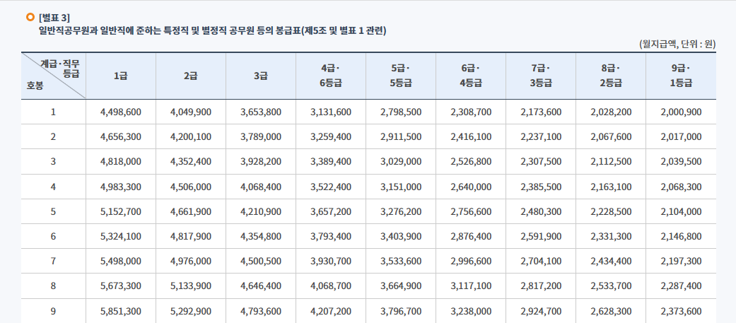 1. 2025년 공무원 봉급표 개요