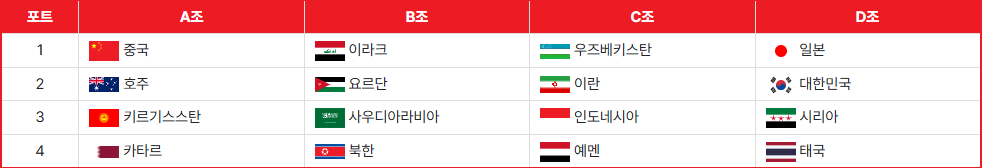 - B조: 이라크, 요르단, 사우디아라비아, 북한