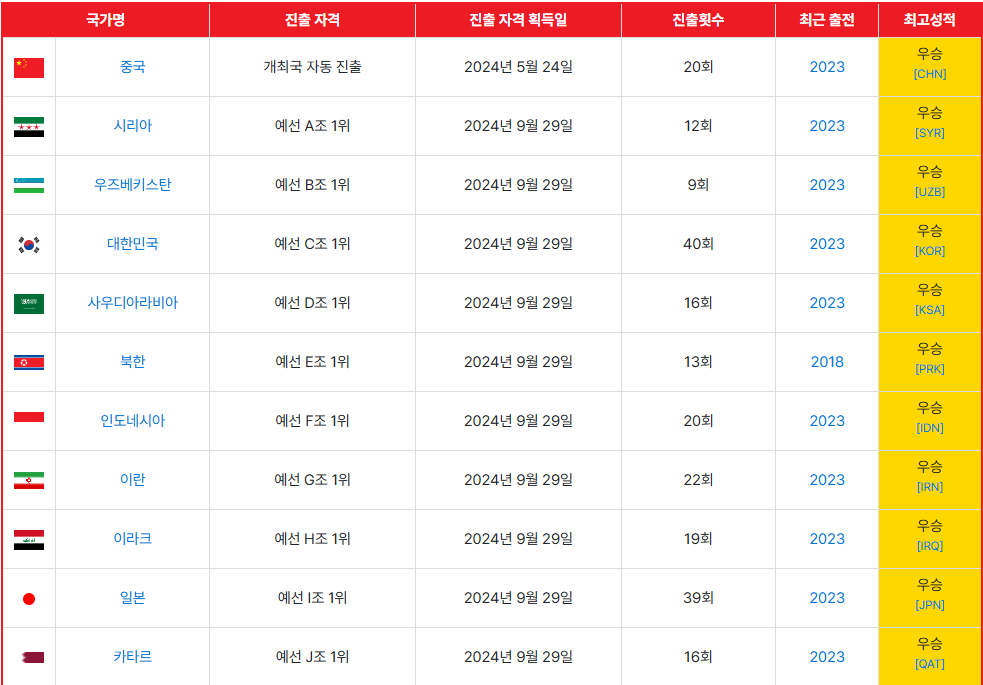 2025 AFC U-20 아시안컵 중국/참가팀 정보 - 나무위키